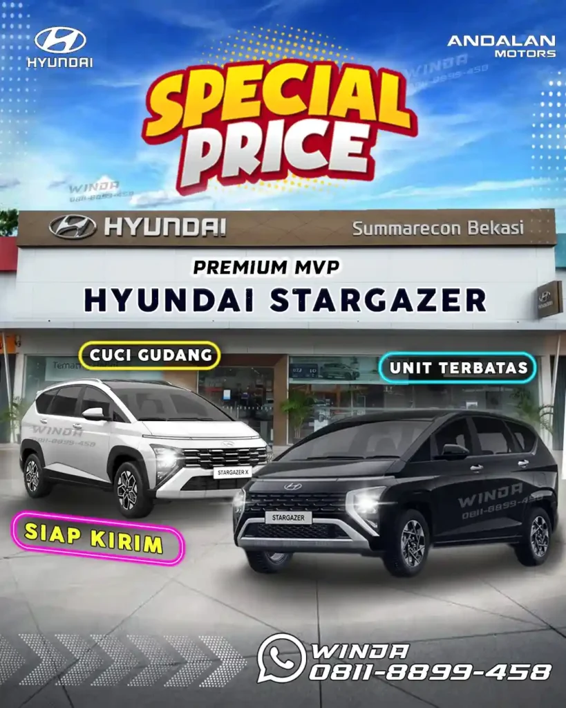 Cari Mobil Hyundai di Bekasi? Stok Unit Ready, Siap Kirim Hari Ini! Teks Pendukung: Kunjungi showroom kami di area Bekasi dan dapatkan simulasi kredit mobil Hyundai yang paling sesuai dengan anggaran Anda.